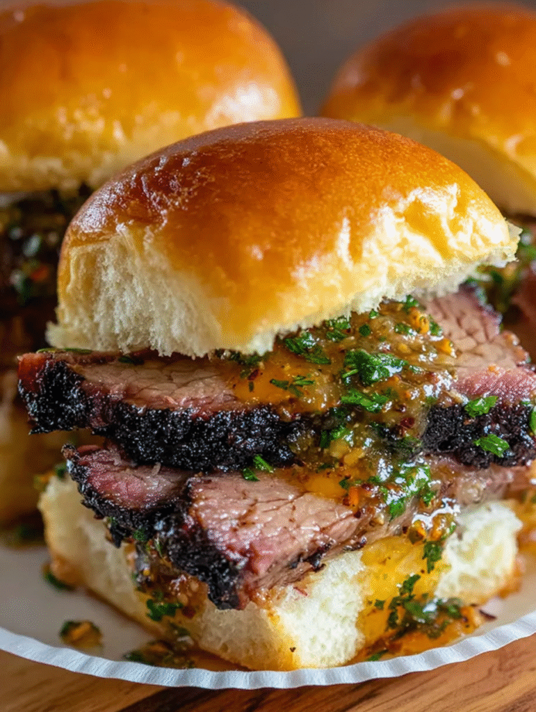 Unlike traditional sliders, these feature the bold flavors of Texas-style smoked brisket combined with the trendy, herb-packed cowboy butter that’s been trending across social media. The result is a perfect balance of smoky, savory, buttery, and herbaceous flavors that will have your guests begging for the recipe.