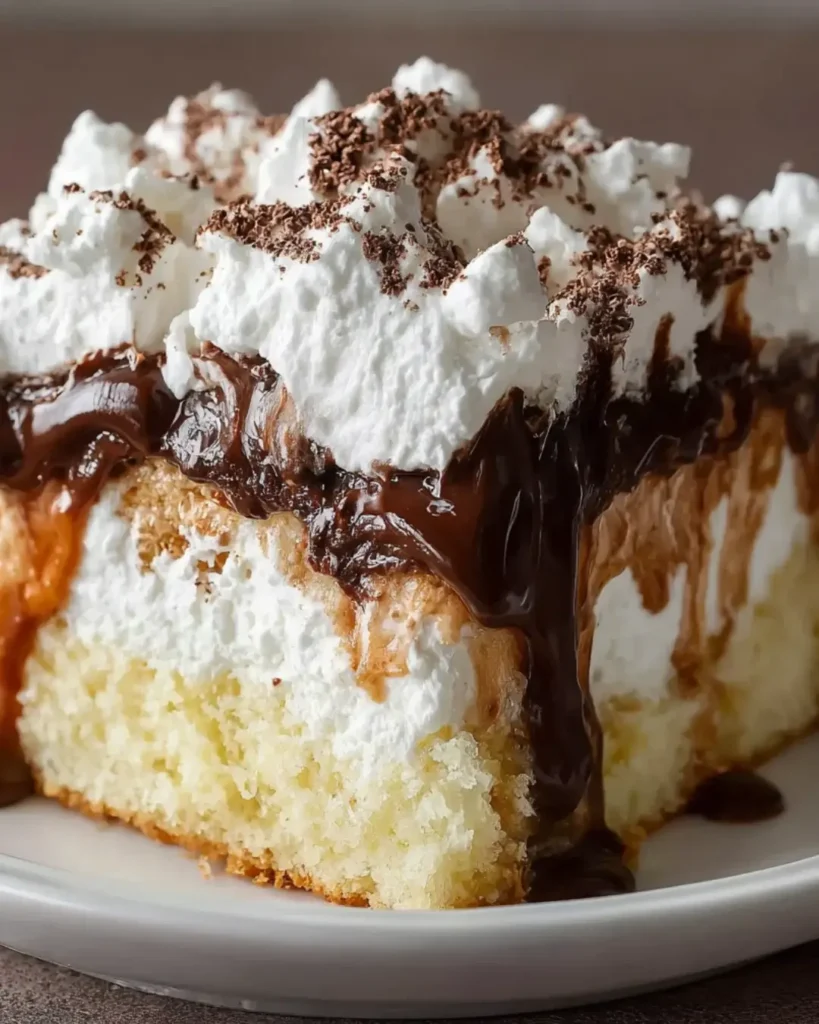 This recipe leverages the culinary science of hydration and flavor layering. Standard cakes rely on fat and sugar for moisture, but a “poke cake” introduces a secondary hydration source (the coffee mixture) after the structure is set. The porous nature of the sponge cake acts like a sponge, drawing the liquid into the center of the crumb. Coffee is naturally acidic and bitter, which pairs chemically with chocolate to mask the bitterness of the cocoa while amplifying its richness—a process known as “blooming” the flavor. The fat in the heavy cream then coats the palate, softening the intensity of the coffee and chocolate for a balanced finish.